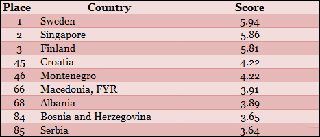 Izveštaj se zasniva na indeksu NRI, koji mjeri količinu faktora, uključujući i infrastrukturu u IT i komunikacije, zakonodavstvo, internet mreže i troškove prijenosa, stepenu obrazovanja, i još mnogo toga.