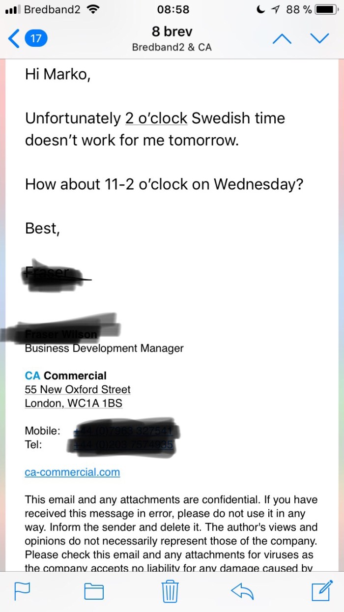 Eftersom jag jobbar med marknadsföring så visade det sig väldigt intressant för CA att prata med mig, de gillar tydligen marknadsförare. No big suprise there!